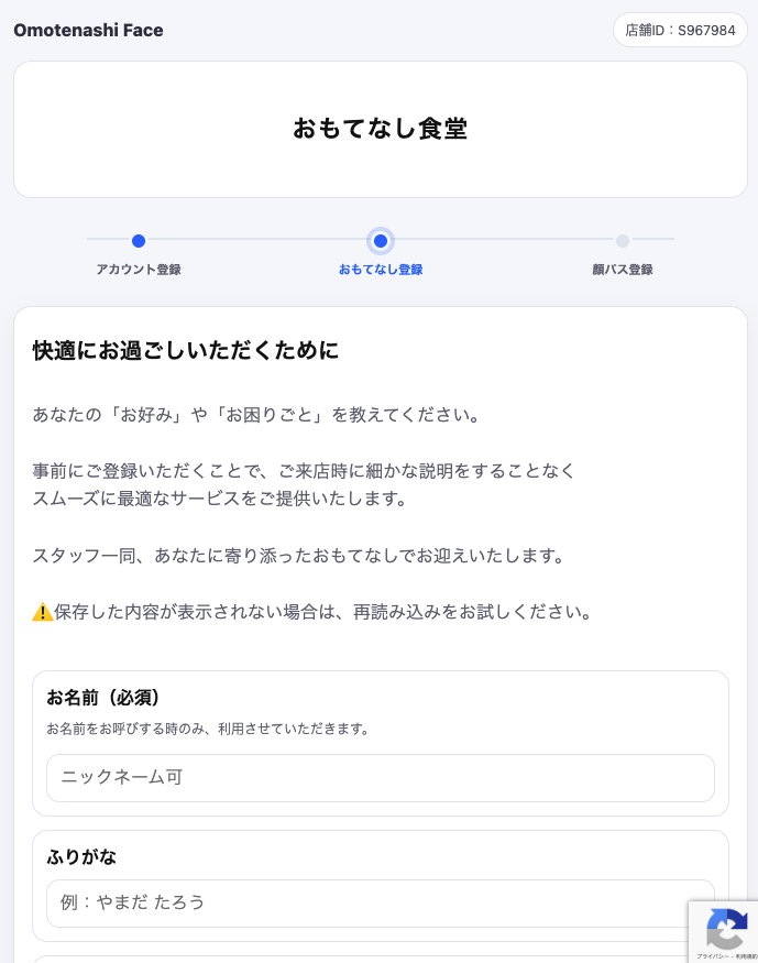 - 店内の他のお客様におもてなしカードが見えることはありません。