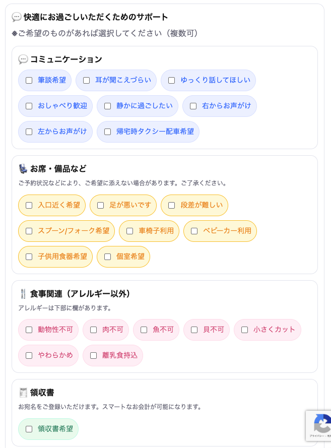 - ご要望事項があればチェックをしてください。