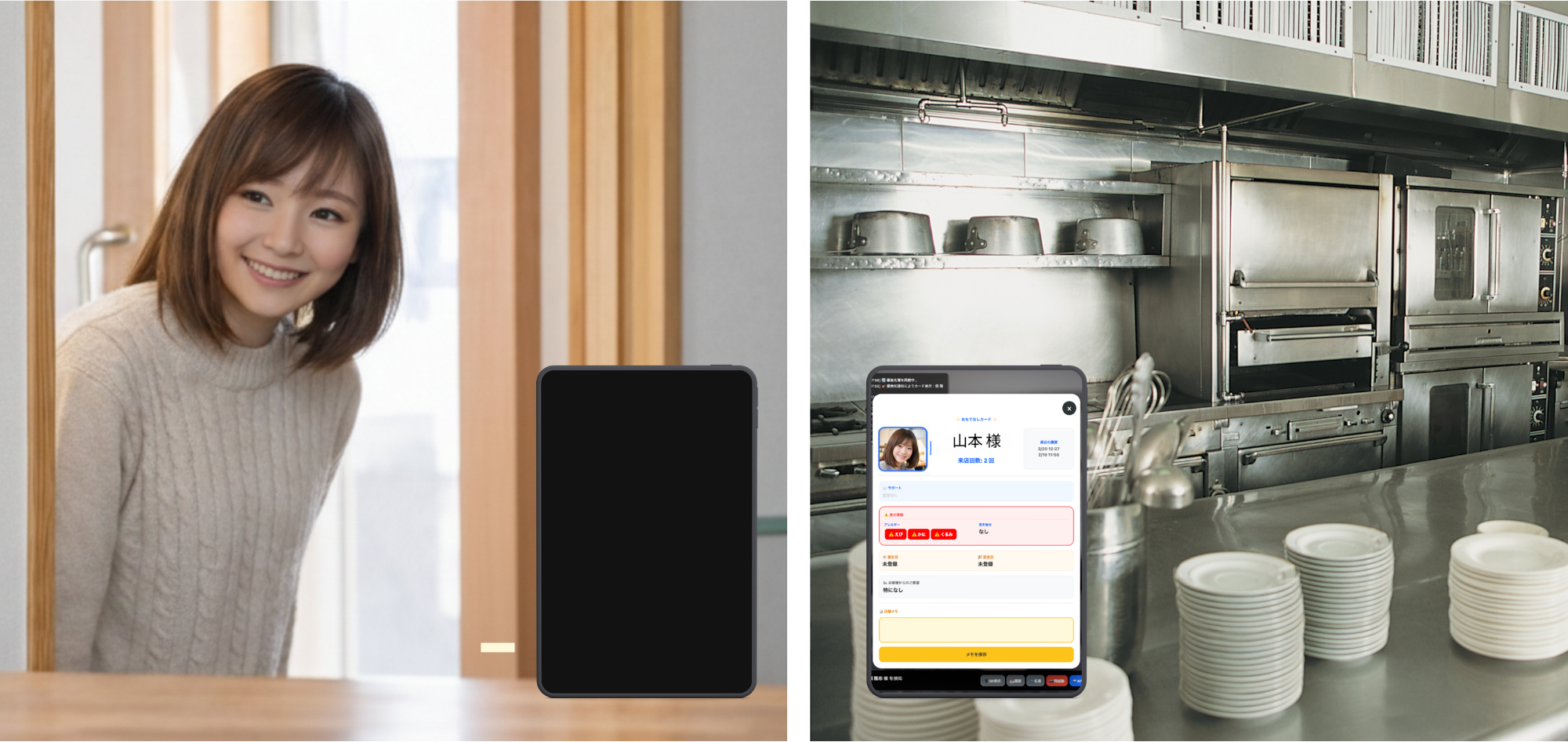玄関やレジのタブレットを入口専用機として。 厨房やデシャップのタブレットやパソコンをモニター専用機として使用。